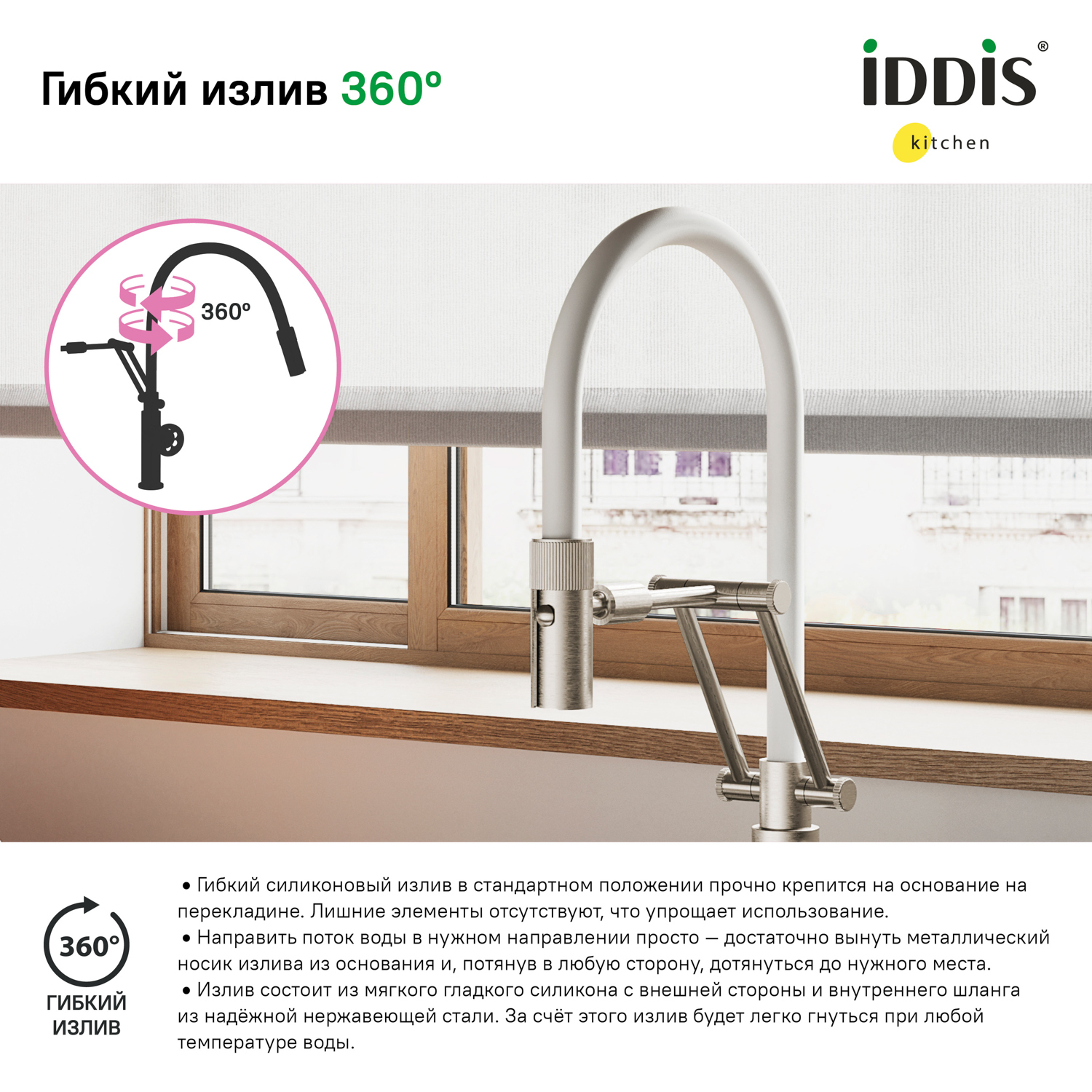 Смеситель для кухни IDDIS Grange GRABNFLi05 белый/сатин