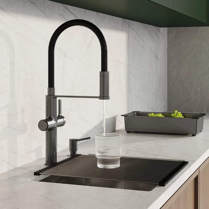 Смеситель для кухни с каналом для фильтрованной воды и гибким изливом IDDIS Ikon IKNGMFFi05 графит