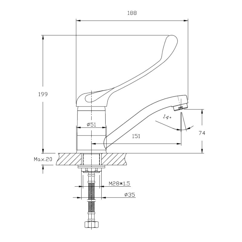 Смеситель для кухни с хирургической ручкой Haiba HB4554-2, хром