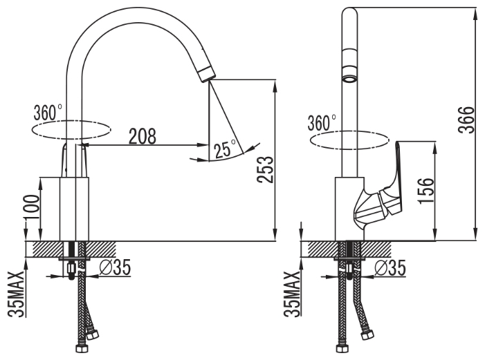 | Монтаж смесителя | на столешницу |
