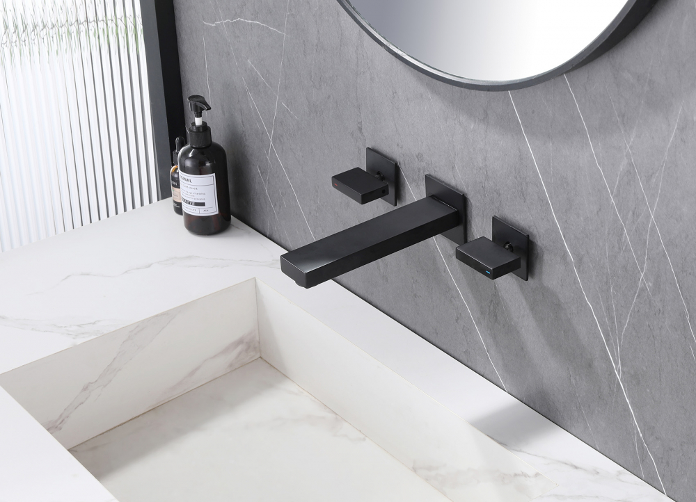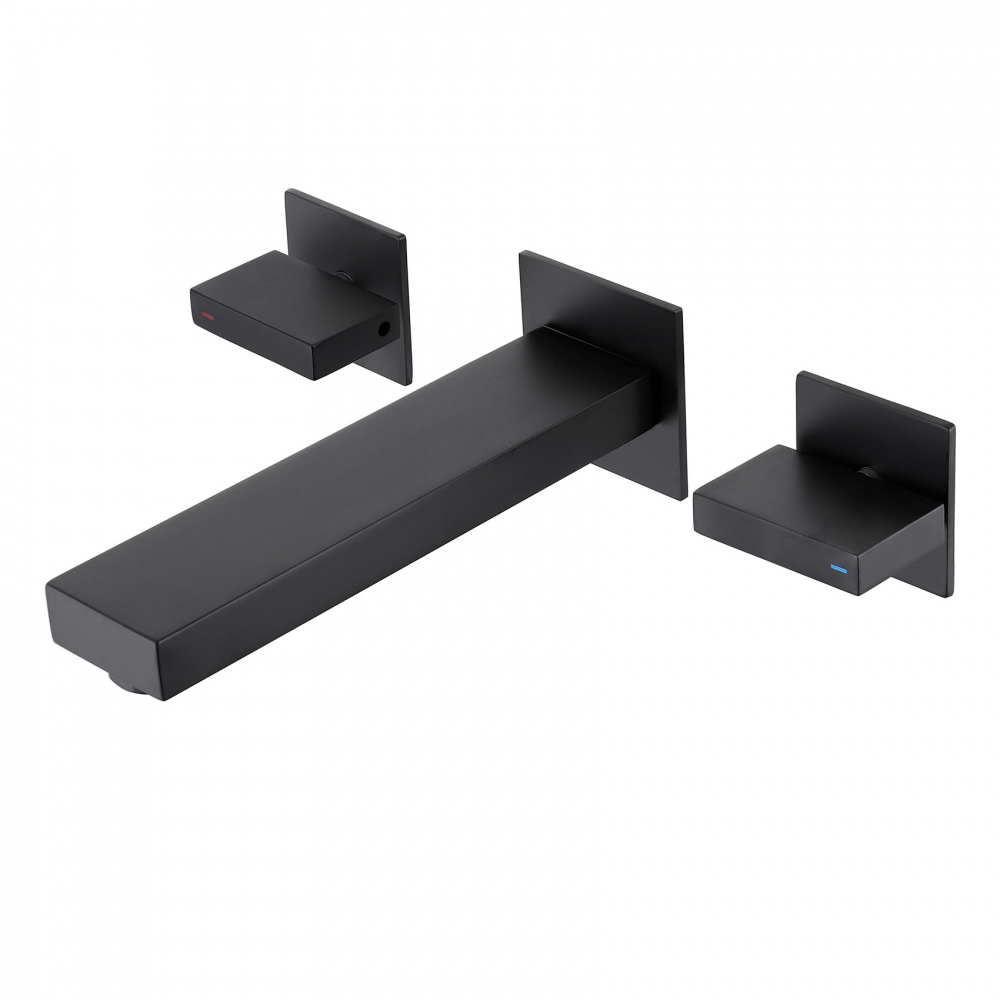 Смеситель ABBER Daheim AF82122B для раковины скрытого монтажа, черный матовый - современная разработка красивой формы с утонченным дизайном, которая идеально дополнит дизайн санузла. Благодаря простому монтажу на стену и вентильному управлению изделие очень практично в использовании. Новая технология конструкции позволит значительно сократить расход воды, при этом регулировать напор и температуру достаточно просто. Модель коллекции Daheim произведена из прочного материала - латуни, стойкого к возникновению налета, а особое покрытие гарантирует идеальный блеск корпуса на период всего срока службы. Данное изделие относится к ценовой категории и выполнено на 3 отверстия для монтажа. Гарантия на товар бренда Abber - 5 лет, значит пользователи могут не сомневаться в его добротности и основательности.
