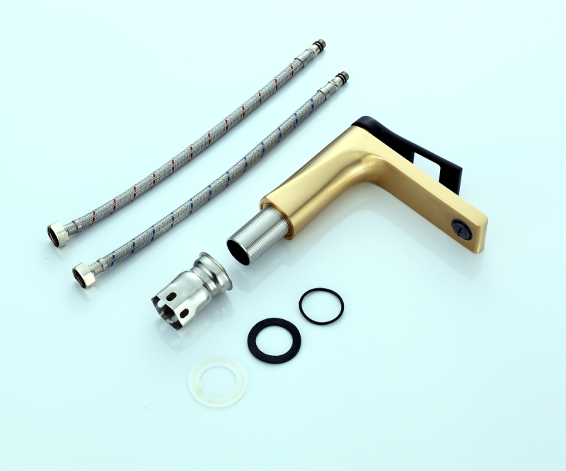 Смеситель для раковины Bronze de Luxe Element EL02GB, матовое золото - новая модель изысканной формы с утонченным дизайном, которая великолепно дополнит дизайн санузла. Благодаря легкому монтажу на раковину и рычажному управлению изделие очень комфортно в эксплуатации. Особая технология конструкции разрешает значительно сократить расход воды, при этом настроить напор и температуру достаточно просто. Модель линейки Element сделана из качественного материала - латуни, устойчивого к возникновению налета, а дополнительное покрытие гарантирует идеальный блеск корпуса во время всего срока службы. Это изделие относится к ценовому сегменту и выполнено на 1 отверстие для монтажа. Гарантийный период на товар компании Bronze de Luxe - 3 года, так что пользователи могут не сомневаться в его добротности и долговечности.