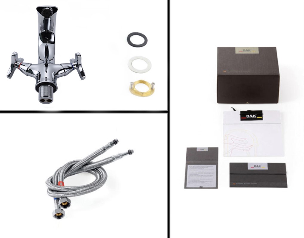 Смеситель для раковины D&K Hessen DA1382141, хром - популярная разработка изысканной формы с интересным дизайном, которая идеально дополнит интерьер санузла. Благодаря легкому монтажу на раковину и вентильному управлению изделие очень практично в быту. Новая технология конструкции даст возможность уменьшить расход воды, при этом настроить поток и температуру вполне легко. Модель коллекции Hessen изготовлена из высококлассного материала - латуни, устойчивого к возникновению налета, а дополнительное покрытие гарантирует идеальный блеск излива во время всего срока использования. Это изделие относится к ценовому сегменту и выполнено на 1 отверстие для монтажа. Гарантийный период на товар компании D&K - 5 лет, значит пользователи могут быть уверены в его надежности и долговечности.