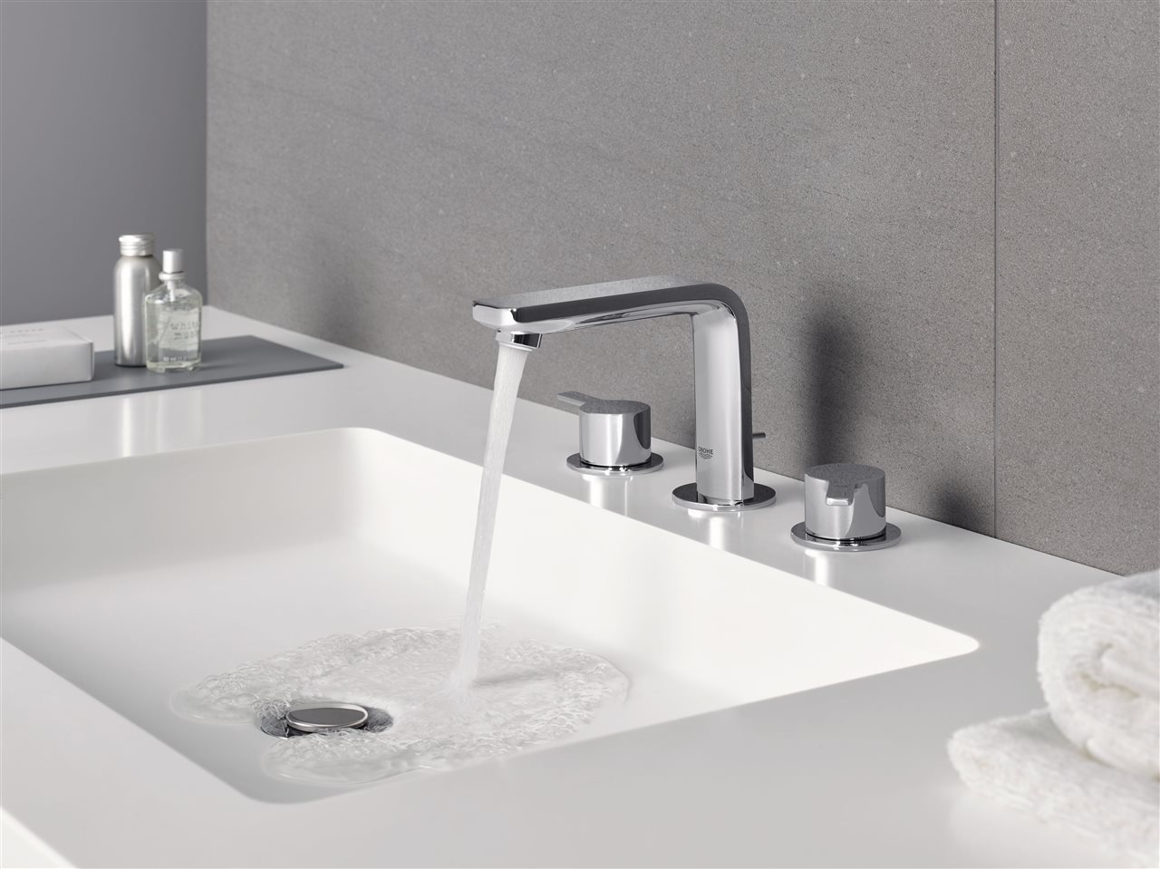 Смеситель для раковины Grohe Lineare 20304001 хром - популярная модель изысканной формы с лаконичным дизайном, которая великолепно дополнит внешний вид ванной комнаты. Благодаря простому монтажу на раковину или на столешницу и рычажному управлению изделие очень удобно в эксплуатации. Современная технология конструкции даст возможность снизить расход воды, при этом регулировать поток и температуру очень легко. Модель линейки Lineare произведена из прочного материала - латуни, устойчивого к возникновению налета, а дополнительное покрытие гарантирует яркий блеск корпуса на протяжении всего срока использования. Такое изделие относится к ценовой категории и выполнено на 3 отверстия для монтажа. Гарантийный период на товар компании Grohe - 5 лет, поэтому покупатели могут быть уверены в его качестве и основательности.