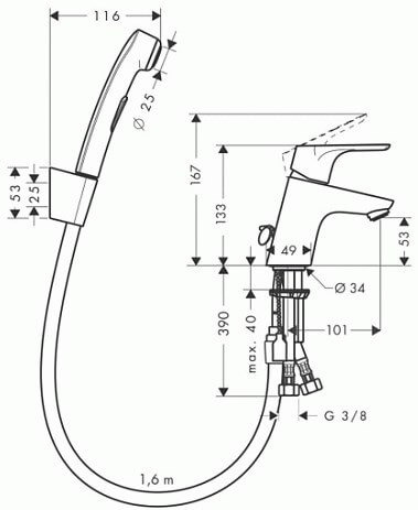 Смеситель для раковины Hansgrohe Focus E2 31926000 с гигиеническим душем Хром