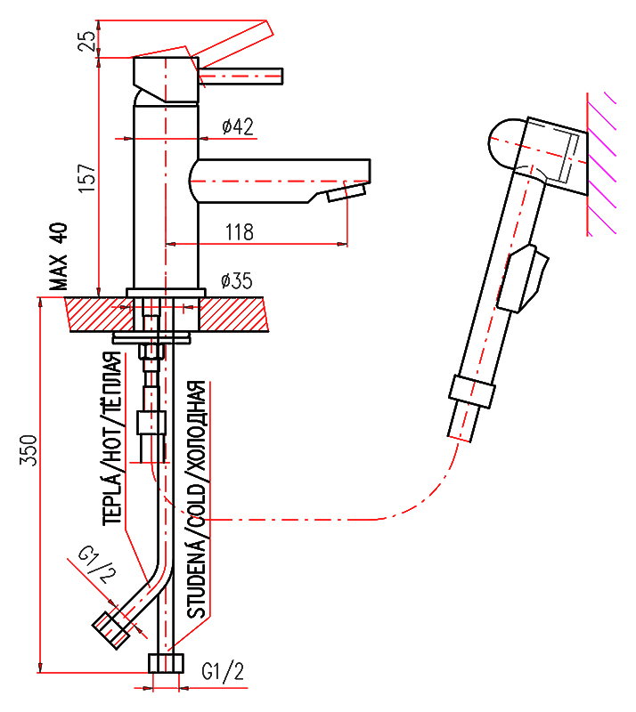 Смеситель для раковины Rav Slezak Seina SE946.5Z с гигиеническим душем золотой
