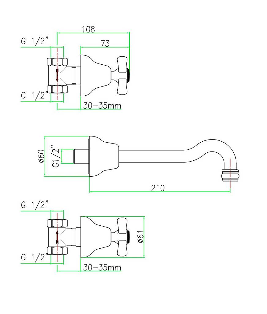 | Монтаж смесителя | на стену |