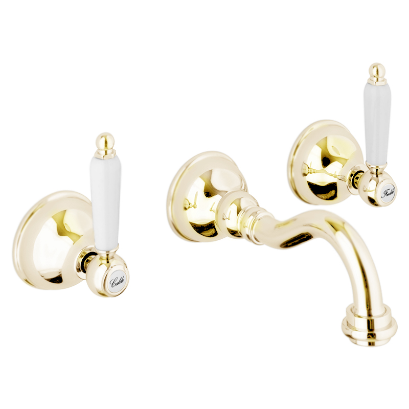 Смеситель для раковины Webert Dorian DO750404010, золото - современная модель красивой формы с утонченным дизайном, которая великолепно дополнит интерьер ванного помещения. Благодаря стандартному монтажу на стену и вентильному управлению изделие очень удобно в эксплуатации. Особая технология конструкции разрешает снизить расход воды, при этом настроить поток и температуру очень легко. Модель коллекции Dorian сделана из высококлассного материала - латуни, устойчивого к механическим повреждениям, а защитное покрытие гарантирует яркий блеск корпуса во время всего срока использования. Это изделие относится к ценовому сегменту и рассчитано на 3 отверстия для монтажа. Гарантийный период на товар фирмы Webert - 5 лет, так что клиенты могут не сомневаться в его добротности и прочности.