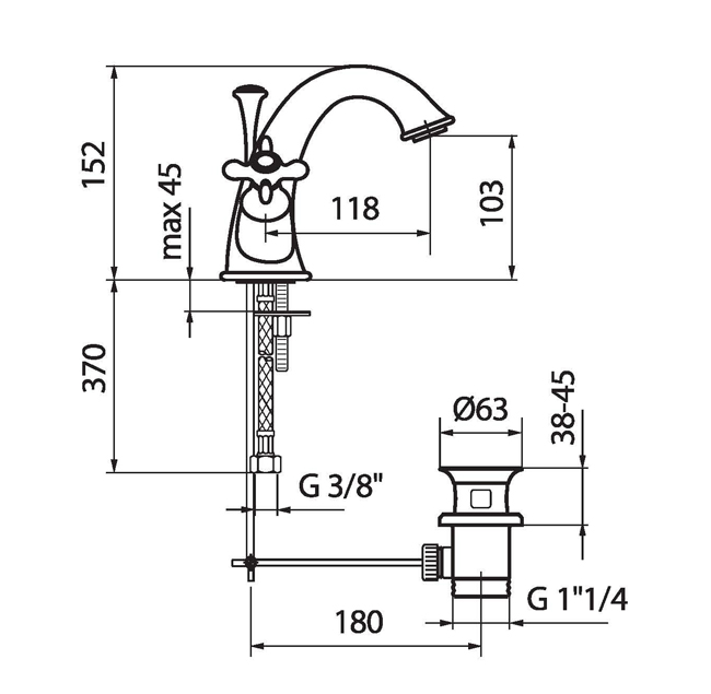 Смеситель для раковины Webert Ottocento OT700102065, бронза