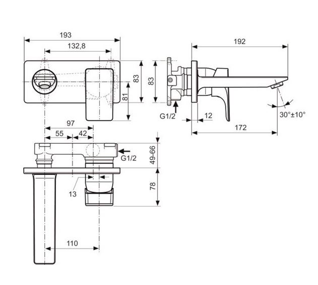 | Монтаж смесителя | на стену |