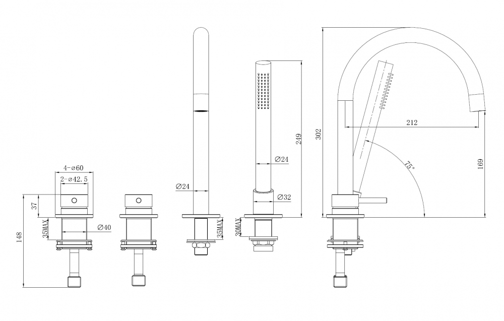 | Монтаж смесителя | для ванны с душем / на борт ванны |