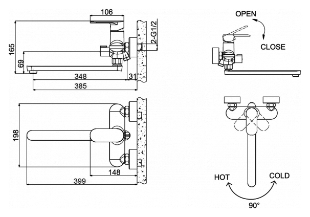 Смеситель для ванны с душем Bravat Opal F6125183CP-02L-RUS хром