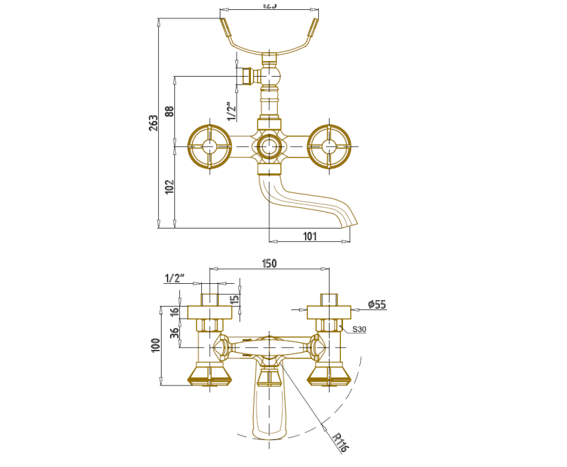 Смеситель для ванны Bronze de Luxe ROYAL 10119, бронза