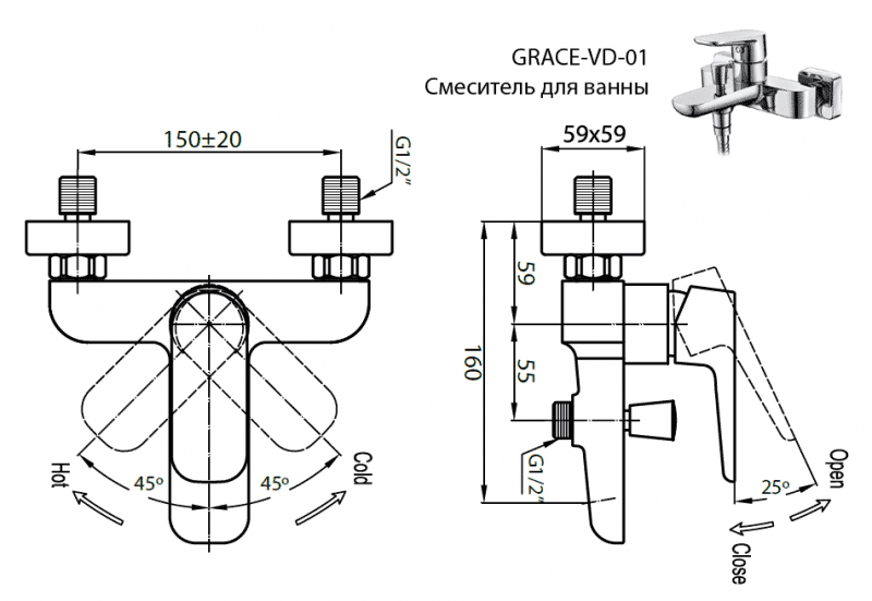 Смеситель для ванны Cezares Grace C-VD-01 Хром