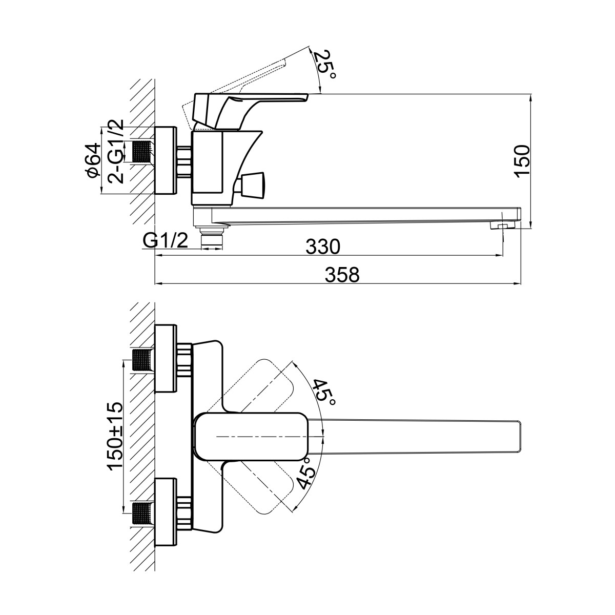 | Монтаж смесителя | на стену |