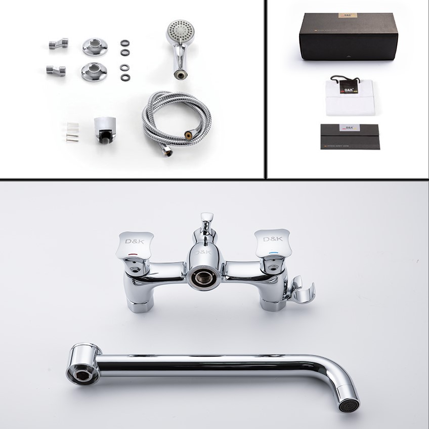 Смеситель для ванны D&K Hessen DA1383301, хром производится в оригинальном стиле и великолепно впишется в обстановку любой душевой комнаты. Модель производства Германии изготовлена из добротного антикоррозийного материала - латуни. Покупатели могут не сомневаться, такая конструкция будет исправно работать длительное время. Дополнительное покрытие придает идеальный блеск поверхности, а процесс поддержания чистоты не доставит никаких проблем. Вентильное управление, правильная форма и красивый цвет делают эту модель вполне удобной в эксплуатации. Современная система работы устройства от бренда D&K предусматривает простую регулировку потока и температуры, при этом гарантируя дополнительную экономию водного ресурса. Установка модели Hessen происходит на стену. Смеситель принадлежит к ценовой категории , а срок действия гарантии на него составляет 5 лет.