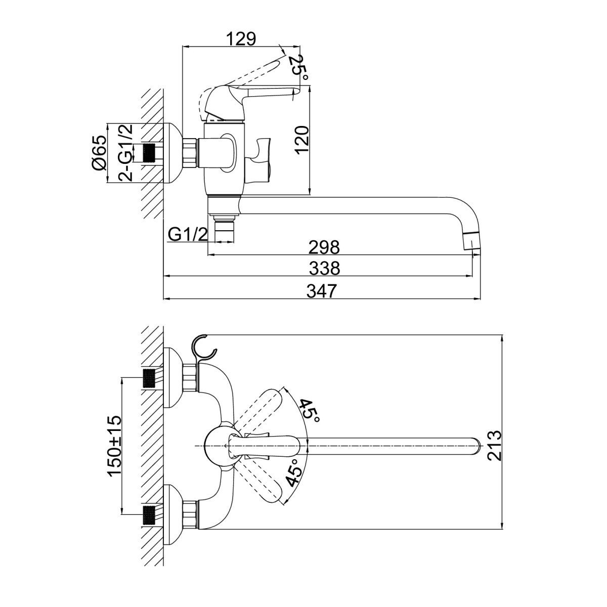 | Монтаж смесителя | на стену |