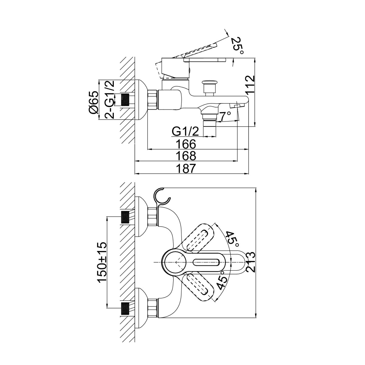 | Монтаж смесителя | на стену |