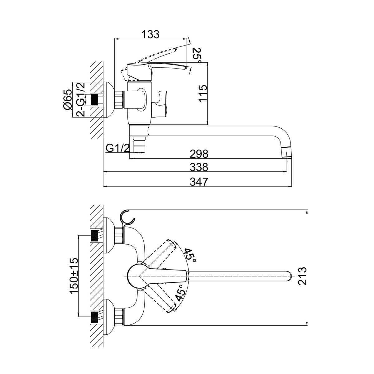 | Монтаж смесителя | на стену |