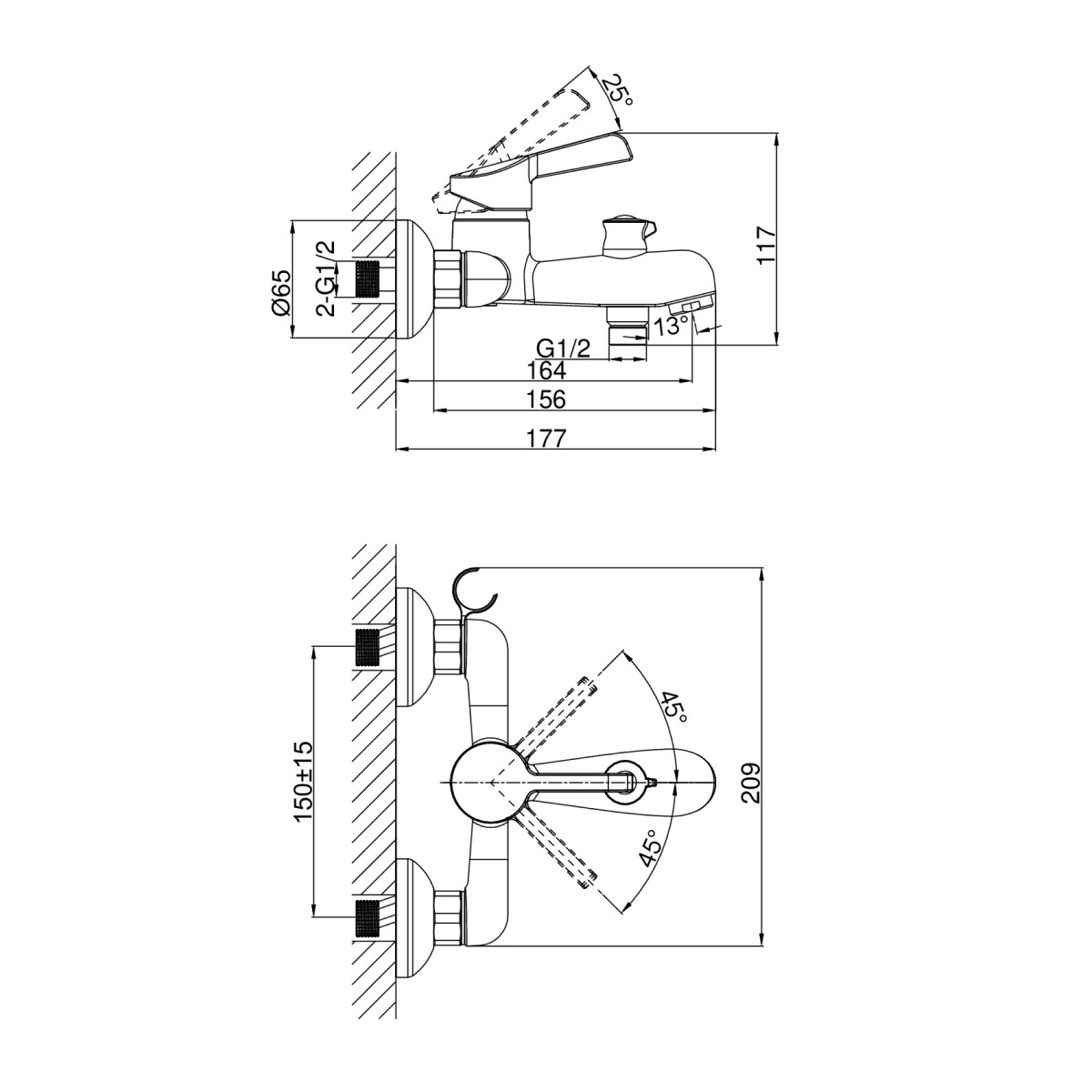| Монтаж смесителя | на стену |