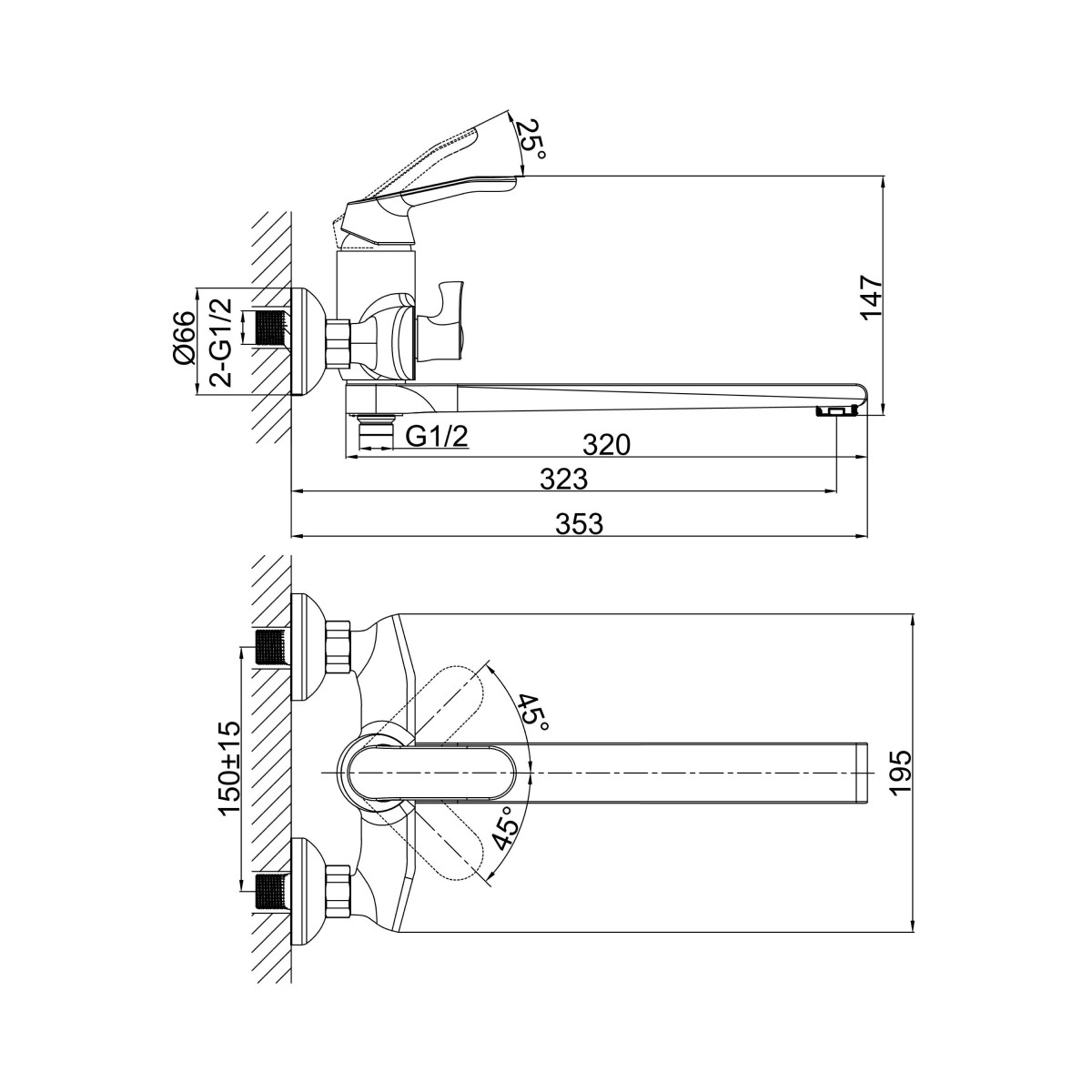 | Монтаж смесителя | на стену |
