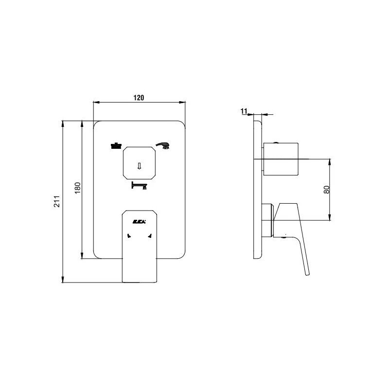 Смеситель для ванны на три потребителя E.C.A Tiera 102167305EX-K хром