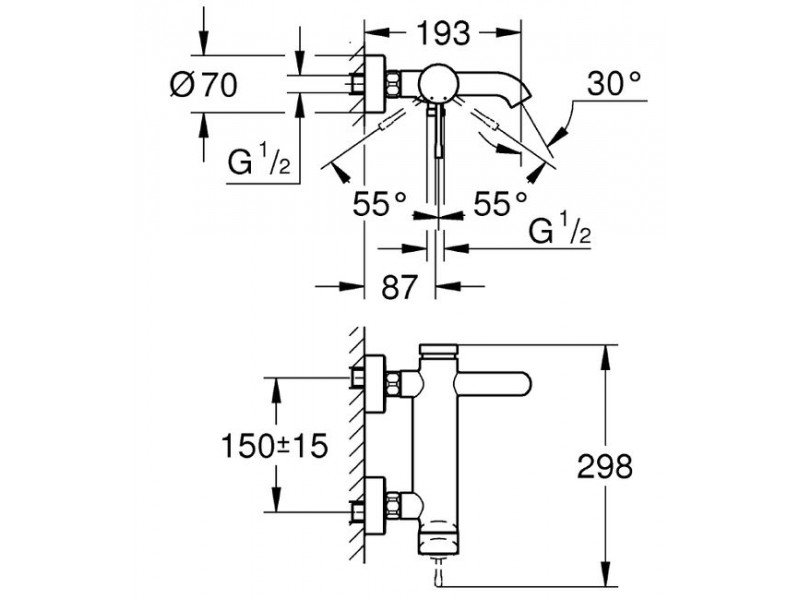 | Монтаж смесителя | на стену |