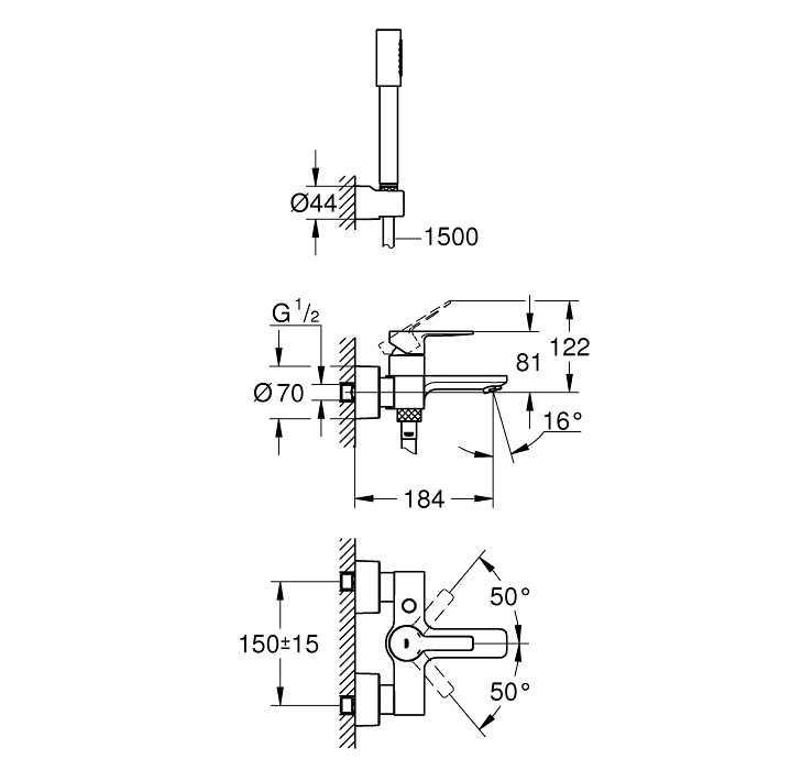 | Монтаж смесителя | на стену |