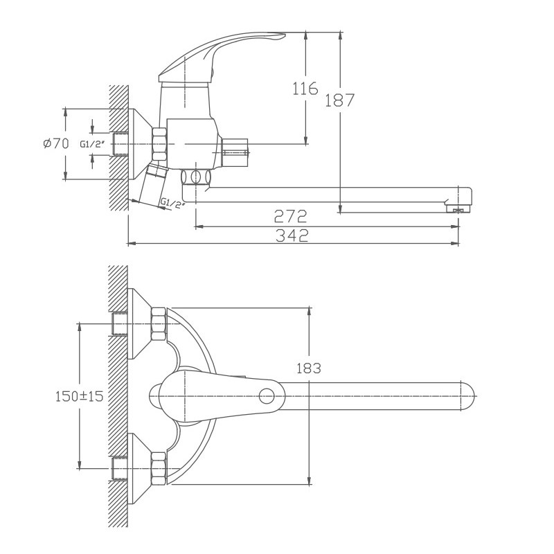 | Монтаж смесителя | на стену |