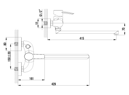 | Монтаж смесителя | на стену |