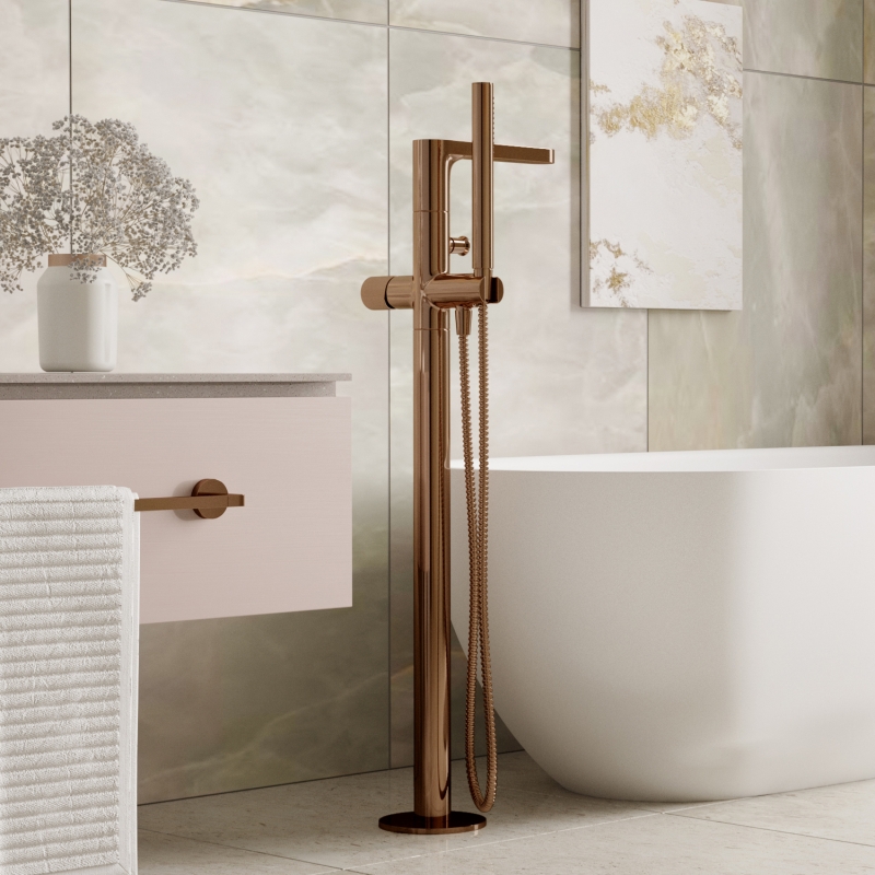 Смеситель для ванны напольный WasserKraft Paar 8821 розовое золото