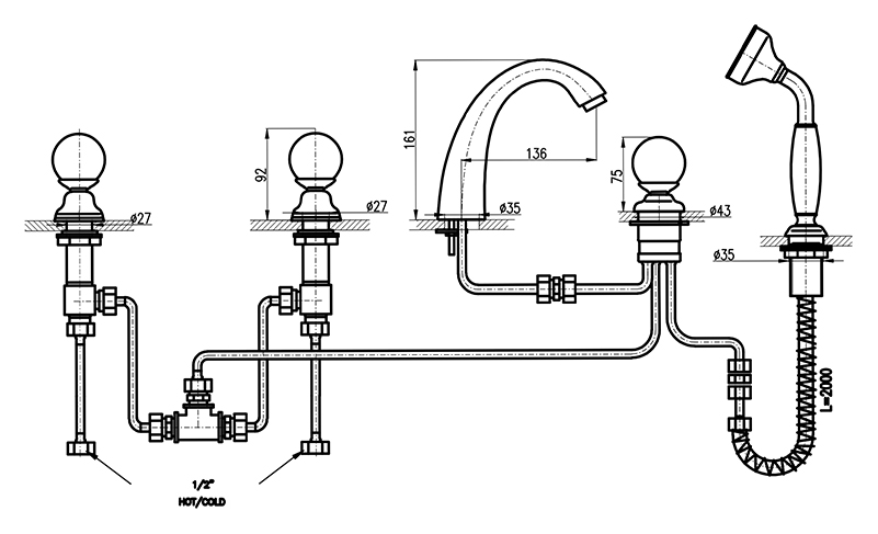 Смеситель для ванны Rav Slezak Brilliance176.5P хром