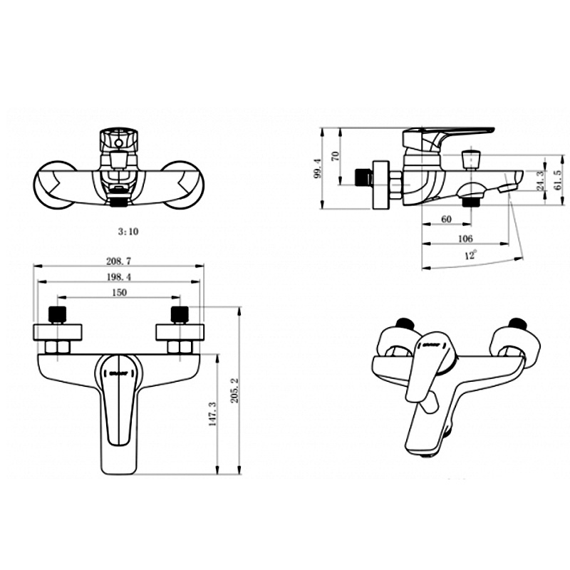 | Монтаж смесителя | на стену |