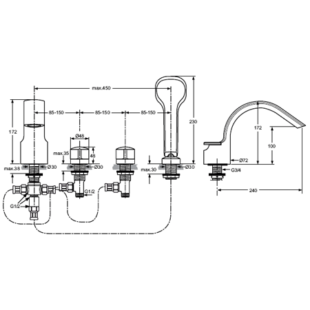 | Монтаж смесителя | на борт ванны |