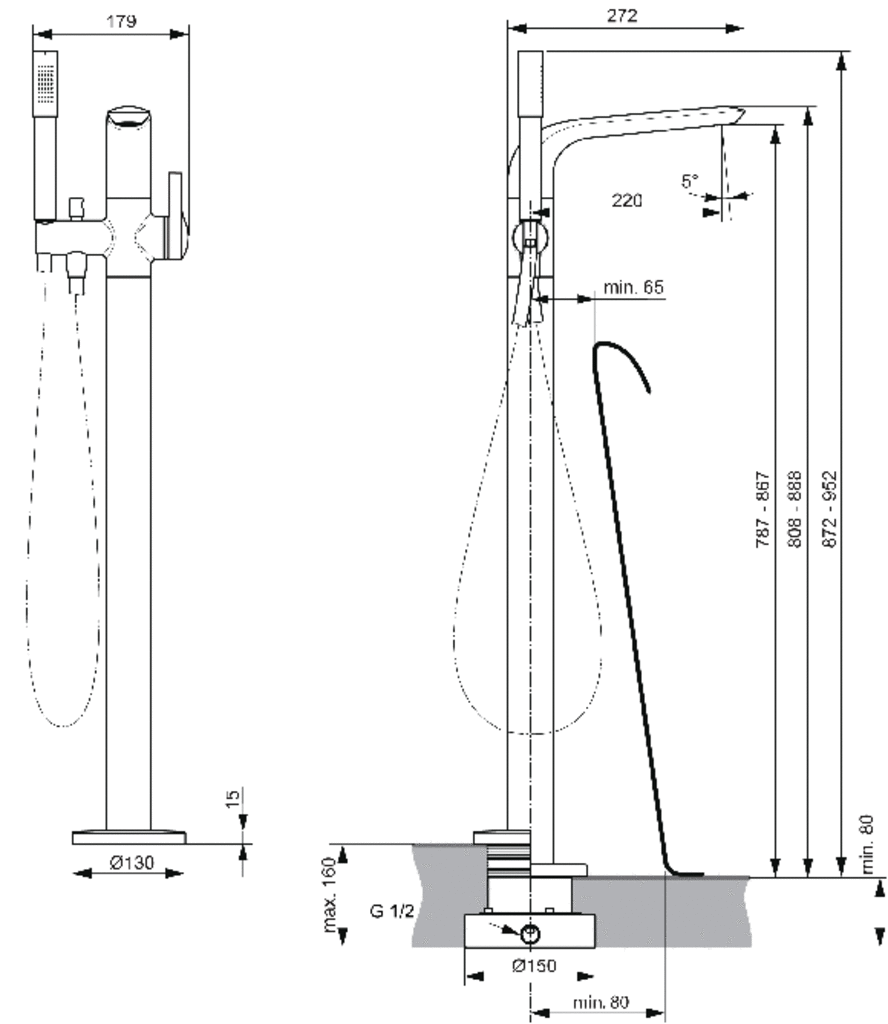 | Монтаж смесителя | на пол |