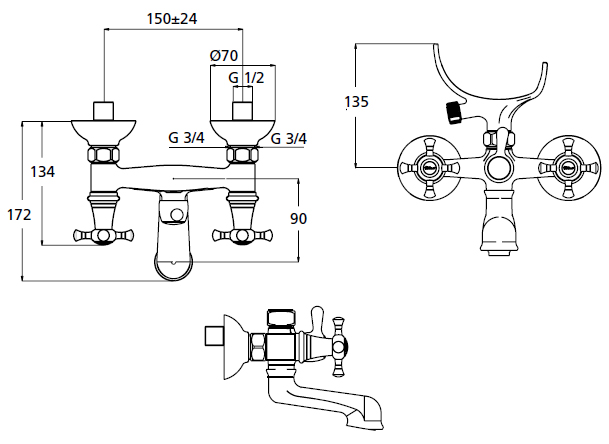 | Монтаж смесителя | на стену |