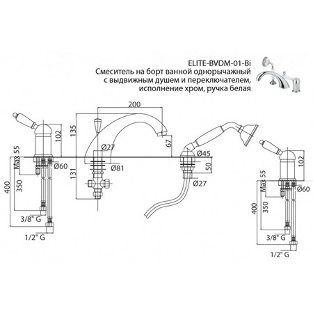 | Монтаж смесителя | на борт ванны |