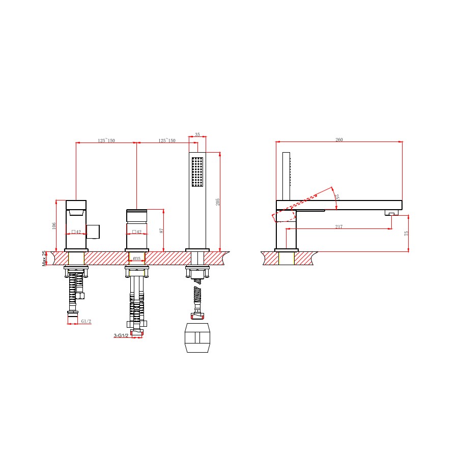 | Монтаж смесителя | на борт ванны |
