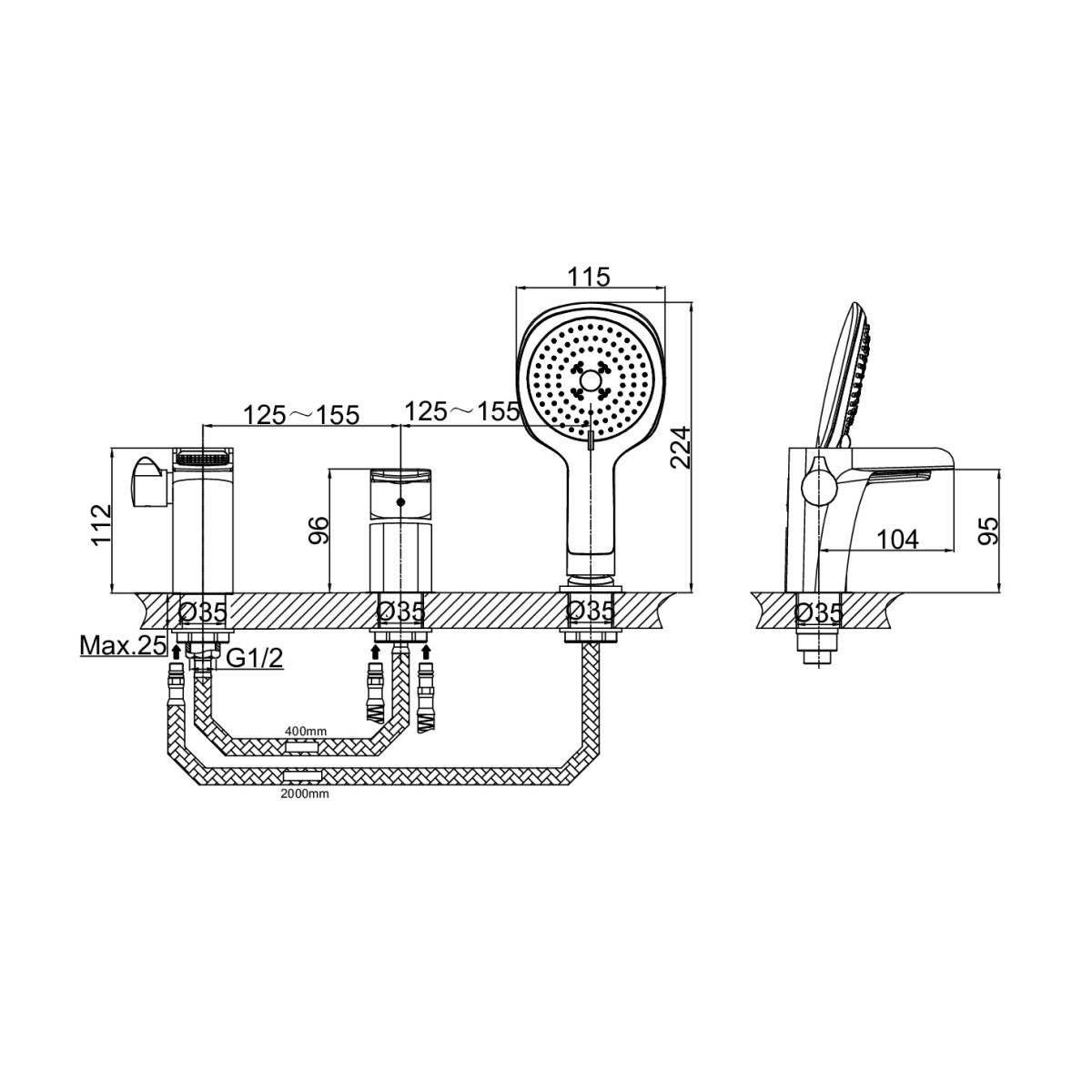 | Монтаж смесителя | на борт ванны |