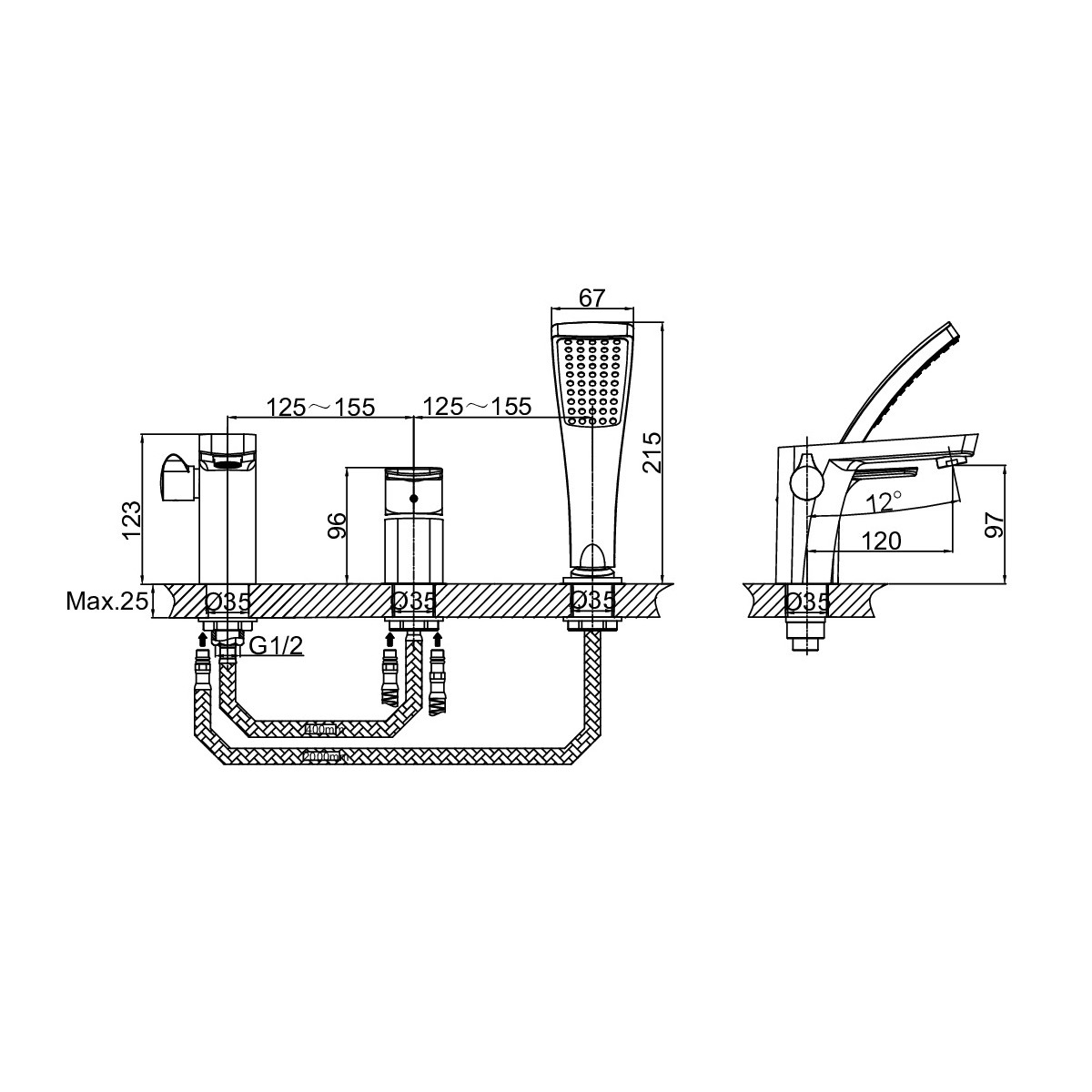 Смеситель на борт ванны D&K Berlin DA1434901, хром