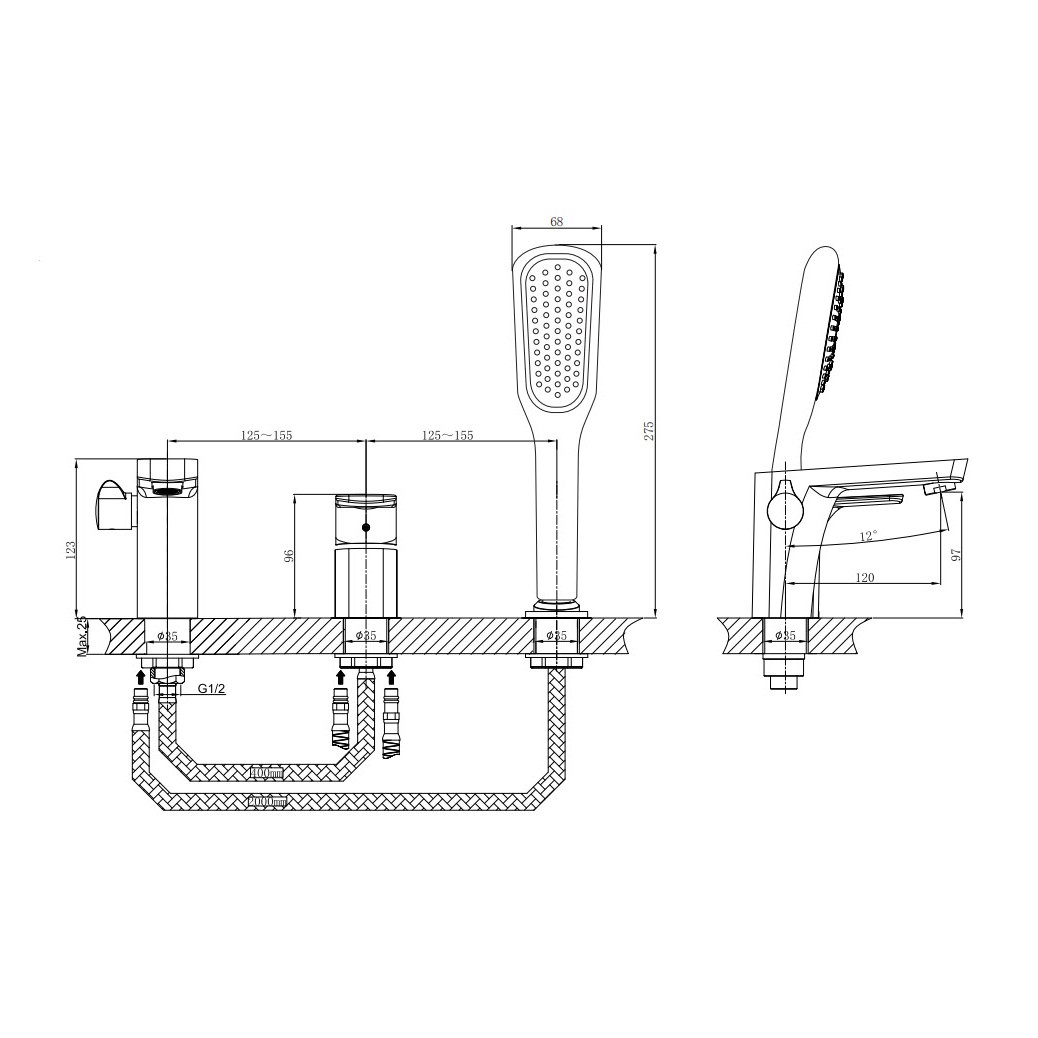 | Монтаж смесителя | на борт ванны |