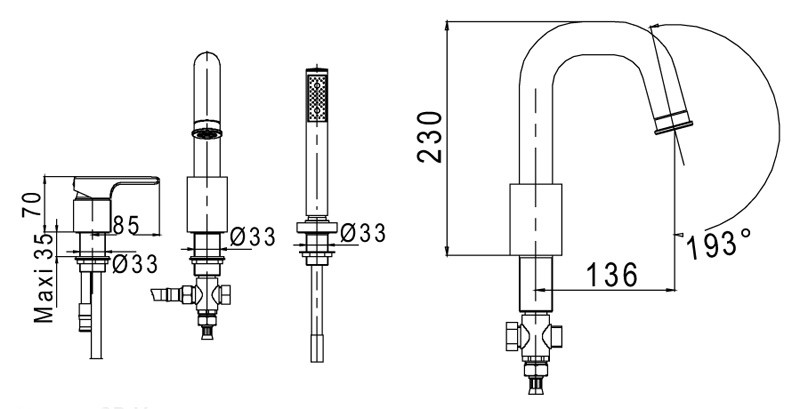 | Монтаж смесителя | на борт ванны |