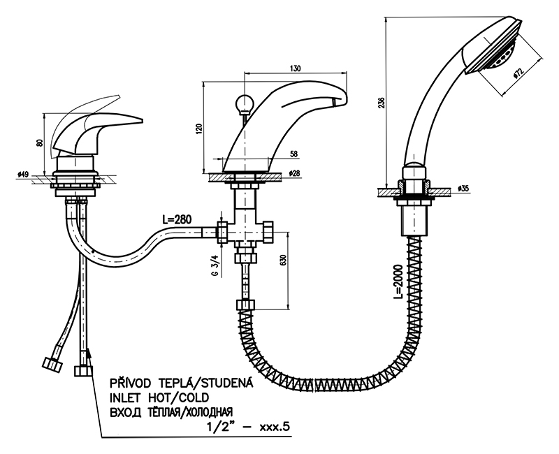 Смеситель на борт ванны Rav Slezak Dunaj D471.5S хром