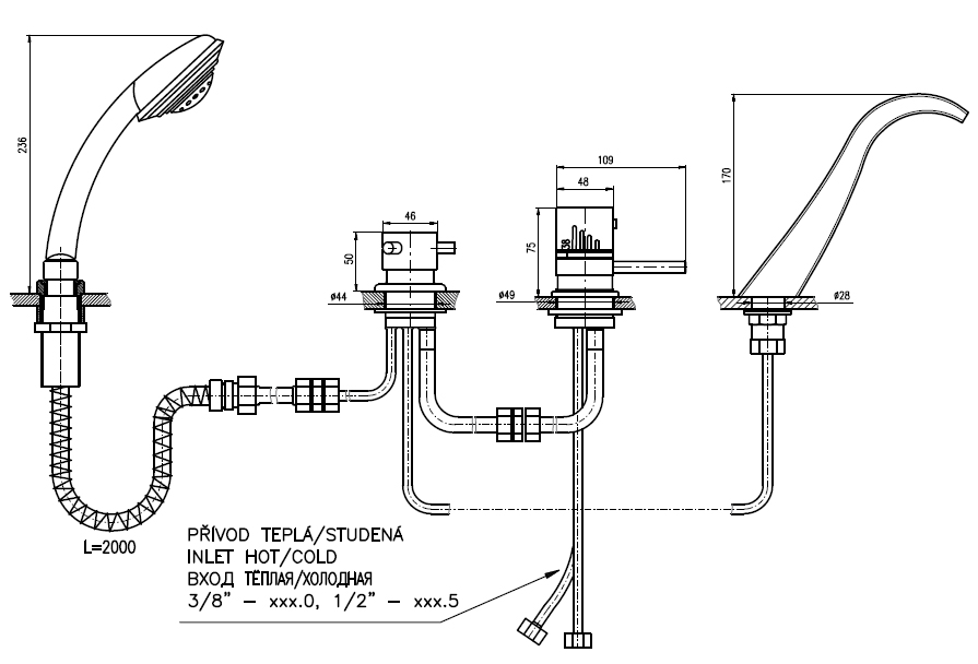 Смеситель на борт ванны Rav Slezak Dunaj Termostat DT261.5P хром