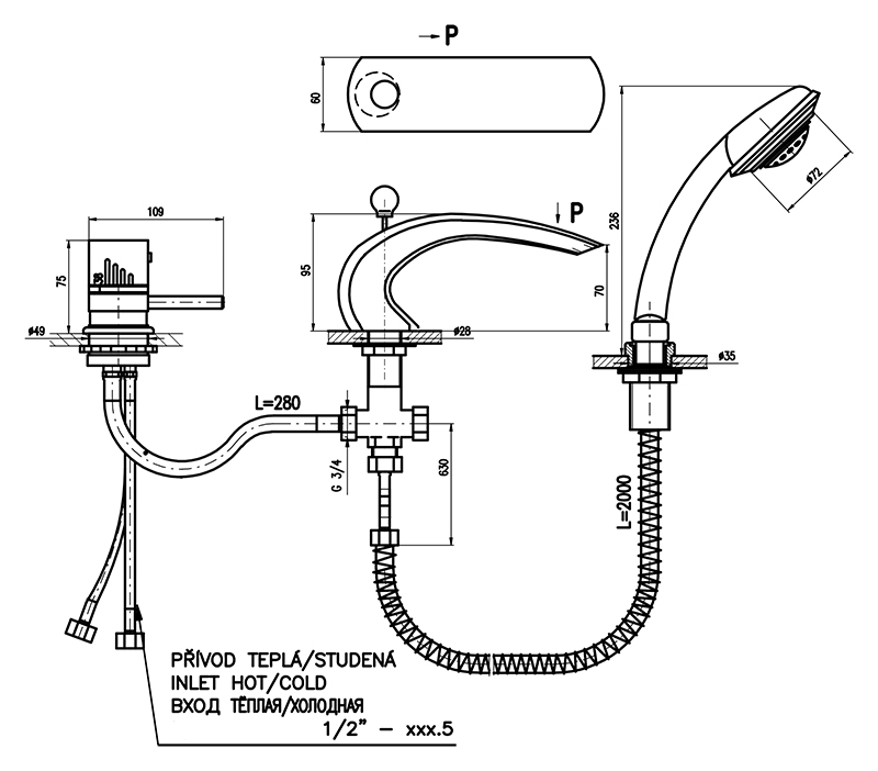 | Монтаж смесителя | на борт ванны |