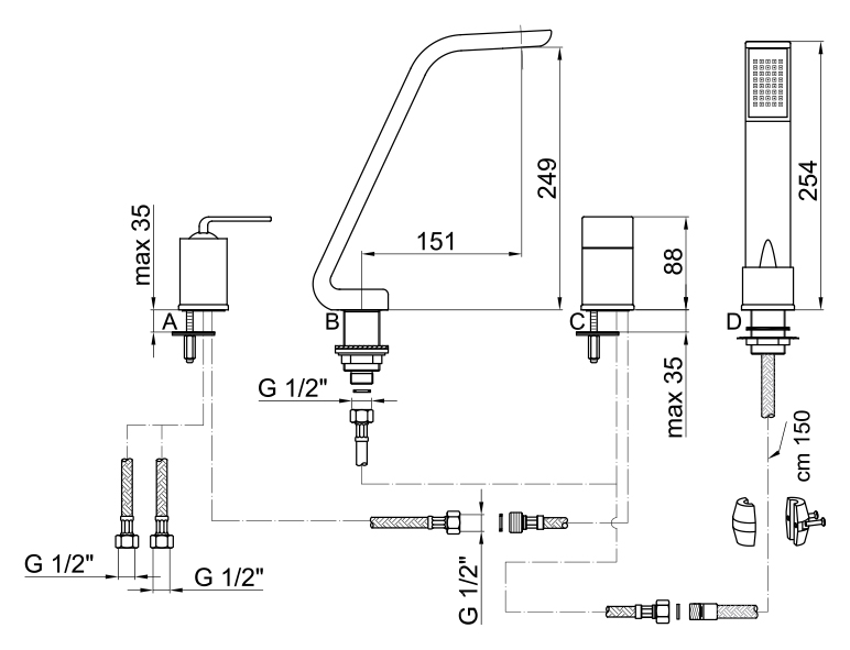 Смеситель на борт ванны Webert Wolo WO850701 Хром глянцевый