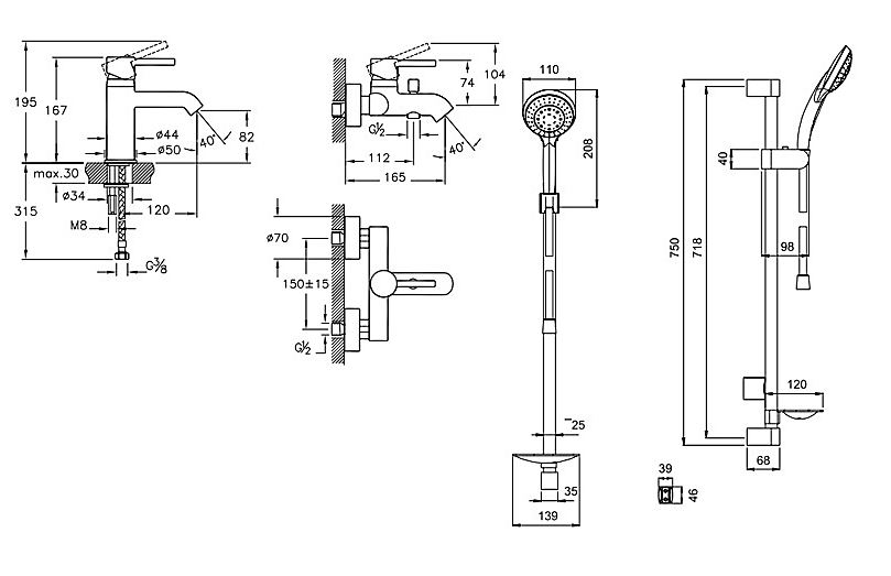 Комплект смесителей для ванной Vitra Minimax S A49153EXP Хром