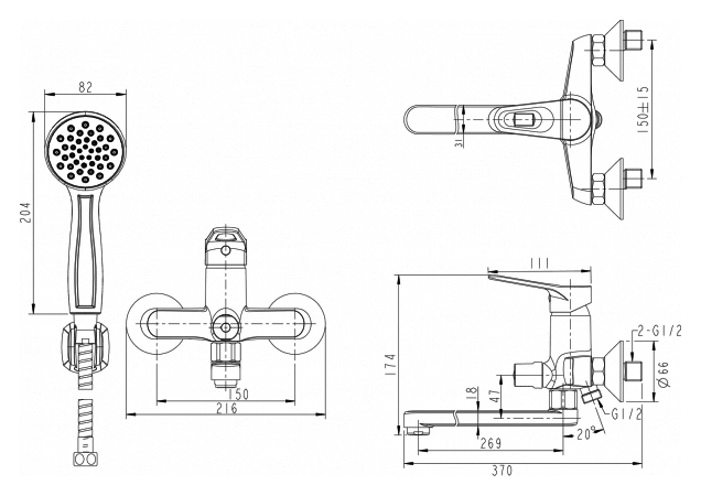 Смеситель для ванны Bravat Eco-D F693158C-LB Хром
