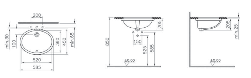 Раковина встраиваемая снизу 60см Vitra Arkitekt 6069B003-0012 белый