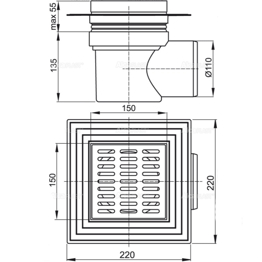 Трап для душа Alcaplast APV10 с решеткой
